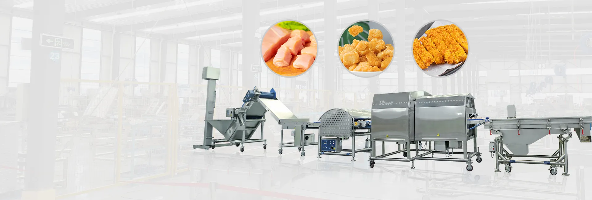 Hiwell Machinery lidera el mercado en la fabricación de equipos y sistemas de vanguardia para el procesamiento de carnes, mariscos y verduras en China. Ofrecemos desde unidades independientes estandarizadas hasta sistemas integrales llave en mano. Nuestra amplia variedad de productos incluye formadoras automáticas, recubridoras, líneas de corte y rebanado de carne, cortadoras de porciones, y líneas completas de producción alimentaria. Con Hiwell, obtienes soluciones completas y personalizadas que se adaptan a todas tus necesidades de procesamiento de alimentos.